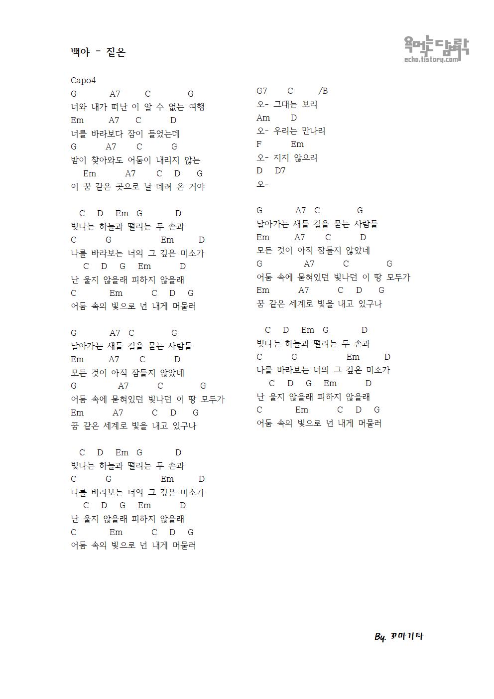 | 꽃 - 정밀아 [코드 악보] (0) | 2019.06.09 |