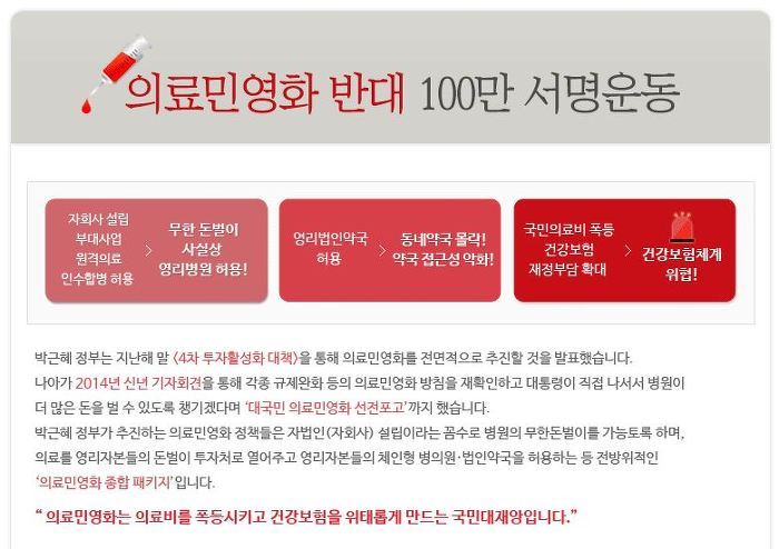 의료민영화 반대 100만 서명운동 하루사이 85만 돌파