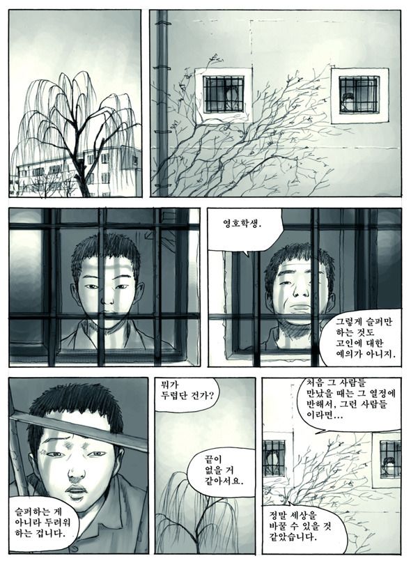 민주화를 향한 열기가 더해가던 중 "책상을 탁 하고 치니까 억 하고 쓰러졌다"는 박종철 열사의 고문 치사 사건과, 이한열 열사가 시위 도중 최루탄에 맞아 사망한 사건 등이 도화선이 되어 전국적인 시위가 발생한다. 6월 10일 영호의 면회를 한사코 거부하던 영호의 아버지는 영호를 만나고 택시를 타고 돌아간다. 택시기사는 영호의 아버지에게 6시에 맞춰 경적 시위를 할 생각인데 함께 하겠느냐고 묻는다. 이에 영호의 아버지가 택시기사와 함께 경적을 누르는 것으로 만화는 막을 내린다.
