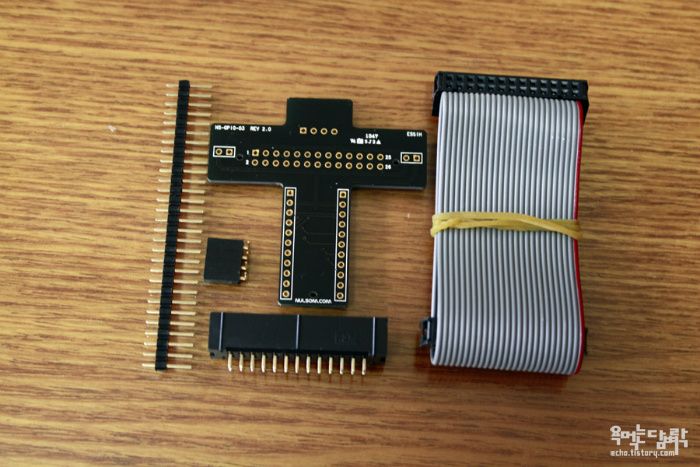 아래 사진에 보이는 것이 엘레파츠에서 판매하고 있는 NS-GPIO-03인데, 라즈베리파이 GPIO를 편하게 쓸 수 있게 만들어주는 보조장치라고 보면 되겠다. 아래사진에서 보이듯 별것 없고 어렵지 않게 만들 수도 있지만 완성도를 생각하면 8천원 주고 사는게 낫다는 생각이다. 아래와 같이 완성되지 않은 상태로 오기 때문에 납땜을 해야한다.