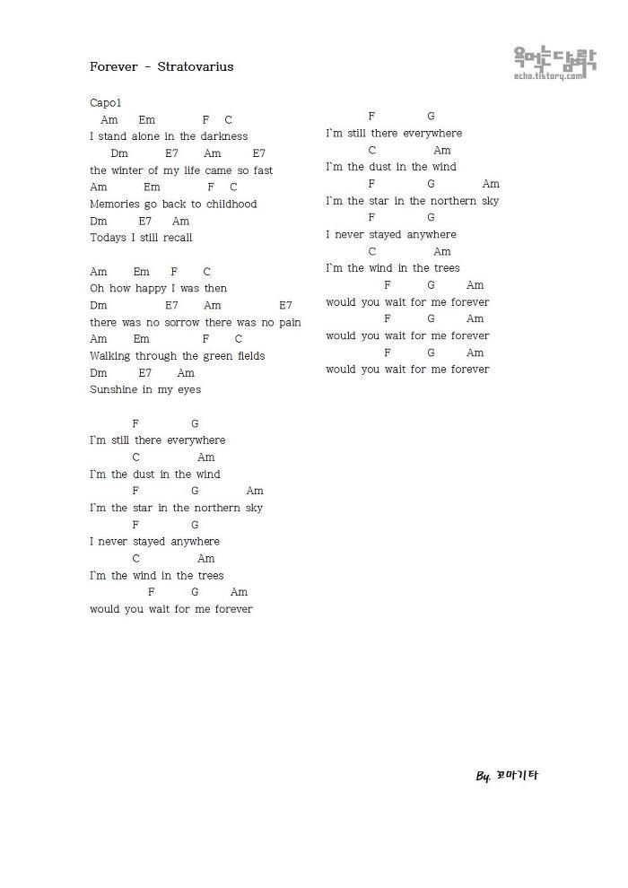 코드 악보 Forever (드라마 첫사랑 ost) - Stratovarius [코드 악보] Colorless. 2014. 8. 18. 11:36 저작자표시 비영리 변경금지 (새창열림)