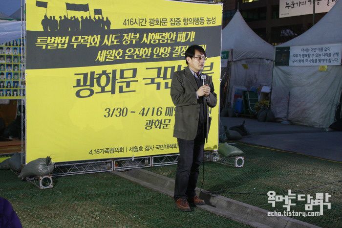 4.16 촛불 문화제는 계속 이어졌다. 쌀쌀한 날씨에도 불구하고 50여명의 시민들이 광화문 광장에 모여 촛불을 밝혔다. 이날 집회에서 세월호 특위 비상임위원인 성공회대 김서중 교수가 강연을 했다. 김 교수는 “세월호 유가족들은 동정의 대상이 아니라 우리가 감사해야할 대상이다. 안전 사회 건설을 위해 앞장서고 있는 숭고한 분들”이라고 말했다. 또한 “세월호 진상조사는 단순히 세월호 사고의 원인을 밝혀 유가족들의 마음을 풀어주는 일이 아니다. 안전한 대한민국을 건설하기 위해 꼭 필요한 일”이라며 “200억원이 아니라 더 큰 비용을 치르더라도 제대로 된 조사가 이뤄져야 한다”고 주장했다.