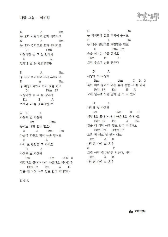 사랑 그놈 - 바비킴 [코드 악보]