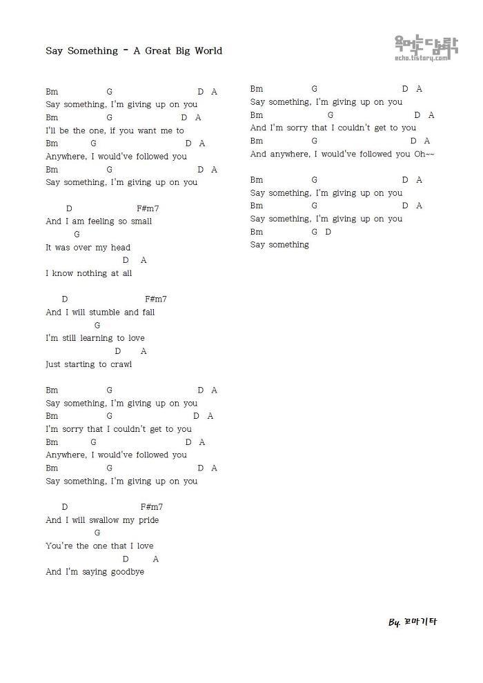Say Something – A Great Big World [코드 악보]