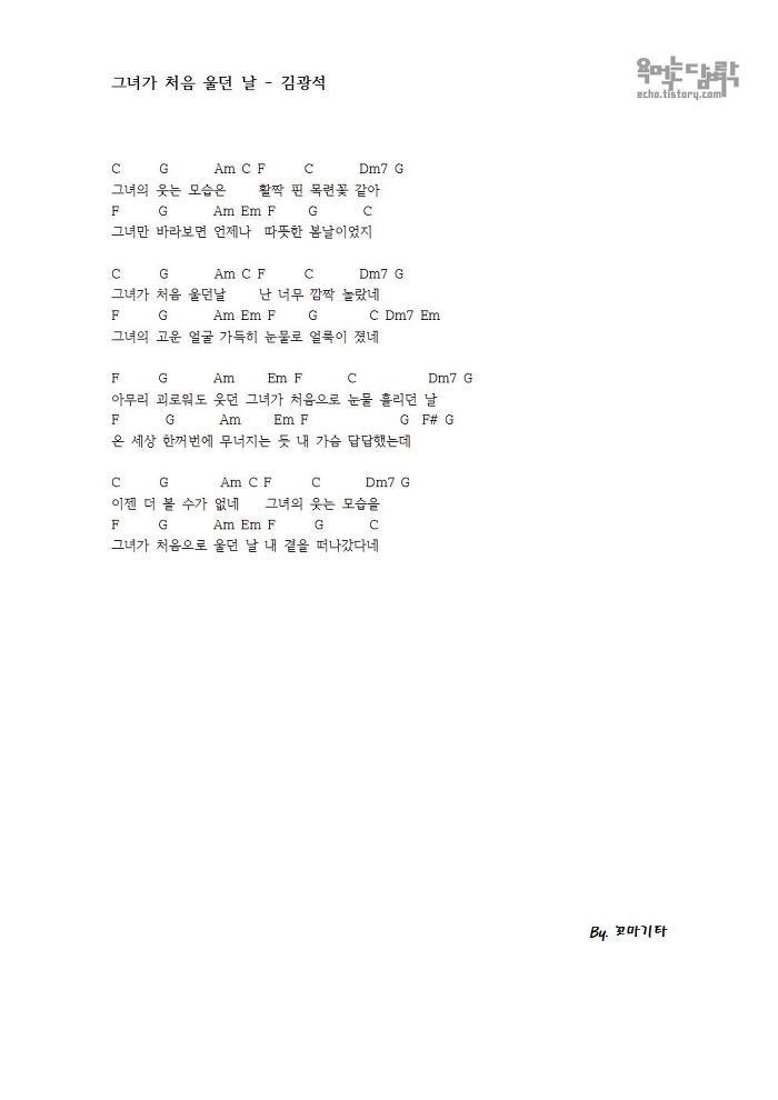 그녀가 처음 울던 날 - 김광석 [코드 악보]