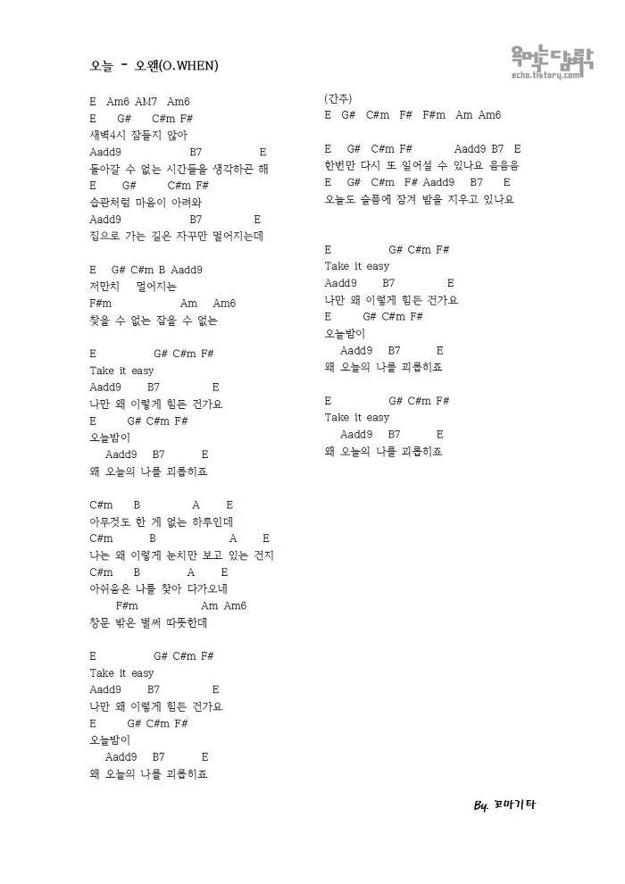 오늘 - 오왠(O.WHEN) [코드 악보]