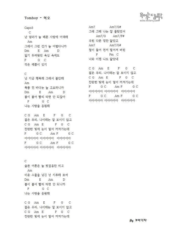 Tomboy-혁오 [코드 악보]