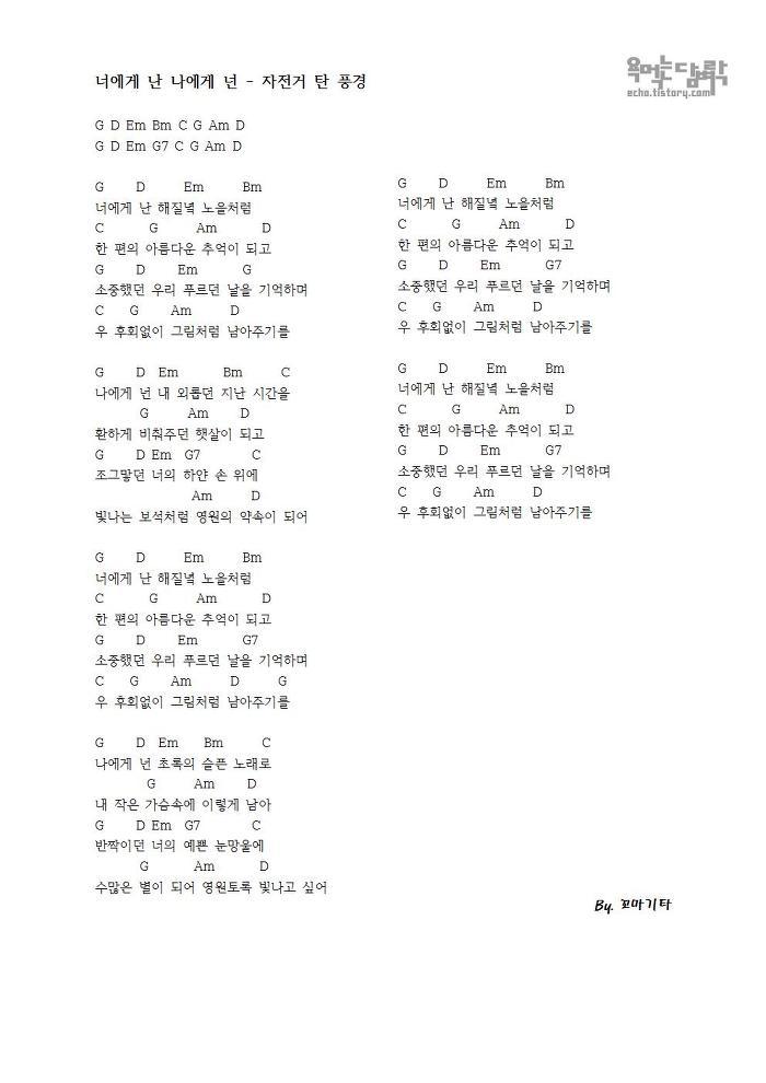 너에게 난 나에게 넌 - 자전거 탄 풍경 [코드 악보]
