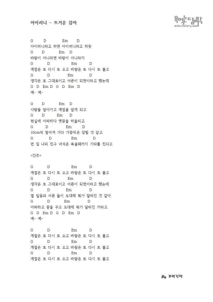 아이러니 - 뜨거운 감자 [코드 악보]