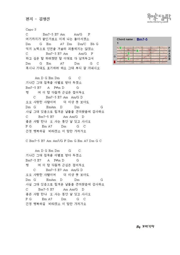 편지 - 김광진 [코드 악보]