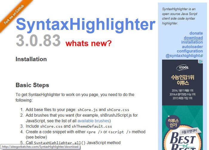 1. SyntaxHighlighter 다운받아서 홈페이지에 올리기
