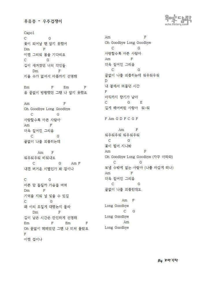 후유증 - 우주겁쟁이 (아는형님) [코드 악보]