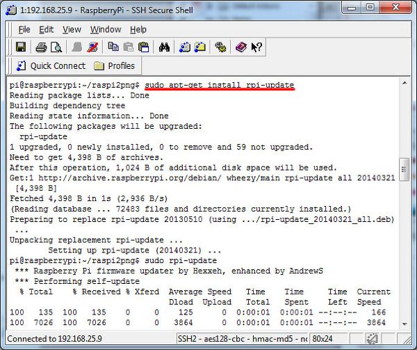 콘솔에서 'sudo apt-get install rpi-update'를 입력하면 스스로 펌웨어를 업데이트 한다.