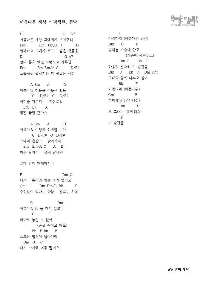 아름다운 세상 (알라딘 OST) - 박정현, 존박 [코드 악보]